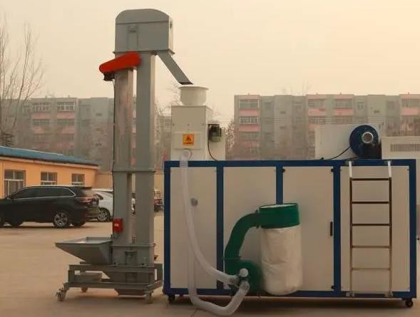 The integrated seed coating machine with drying system is suitable for the coating and drying of granular seeds such as wheat, corn(maize) and paddy. After the seeds are coated, a layer of coating agent is attached to the surface of the seeds and the liquid contains a small amount of water. If the seeds are not dried immediately, the coated seeds will stick and cannot be packaged, stored and transported in a short time, thus affecting the quality of the seeds.